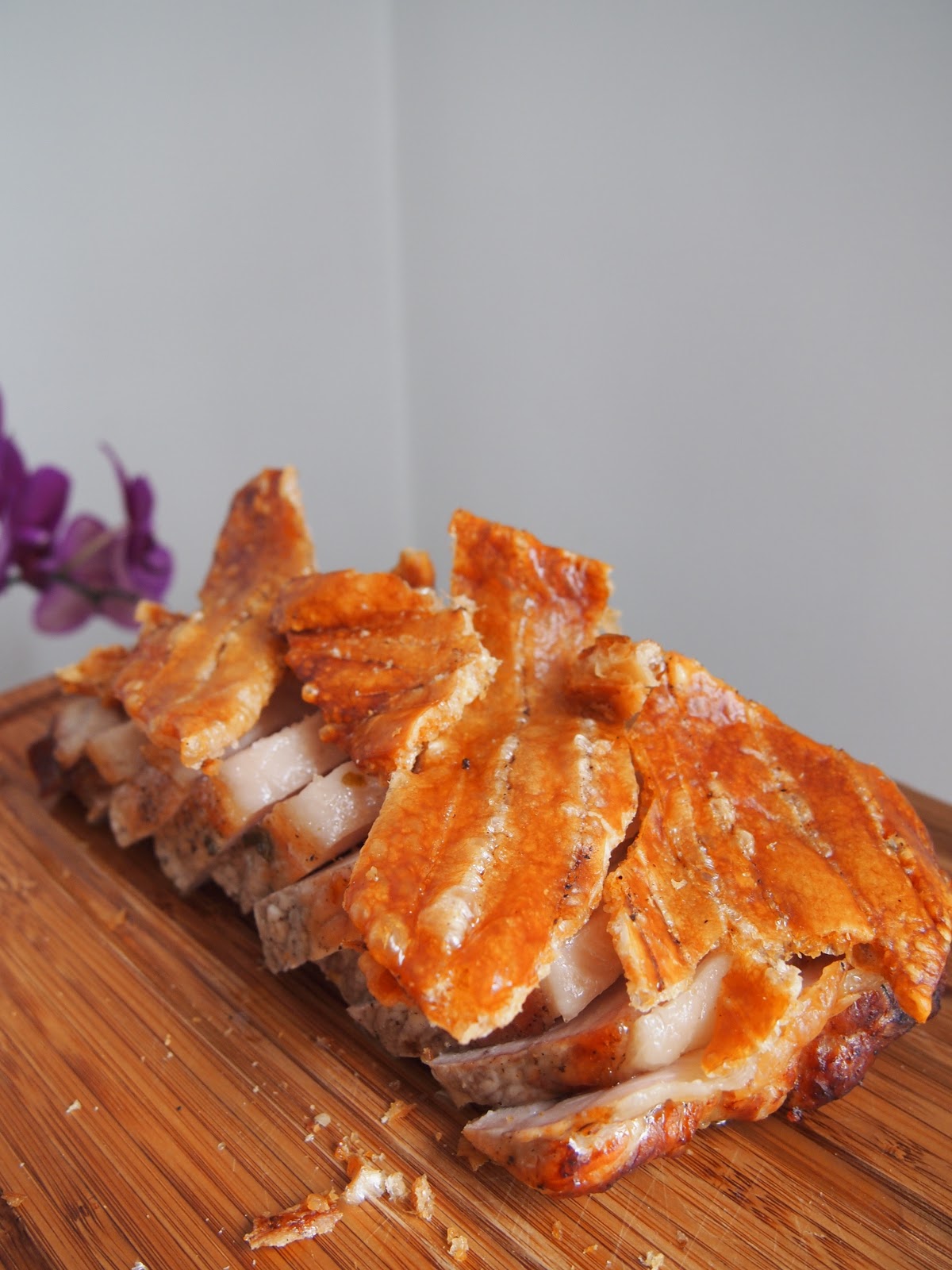 Roast pork is actually quite simple to cook: herbs + salt + pepper + rub + roast. The key is the crackling. In this recipe, I took the crackling off while the meat was resting. Then cooked it in a high temperature oven to achieve the perfect crunchy texture. I feel like cheating a bit taking the crackling off... I remember seeing the perfect crackling in the roast hog dish made by Tom Kerridge from this year's Great British Menu - it was perfectly intact with the meat. One day... hmmm... maybe I can do it as well.