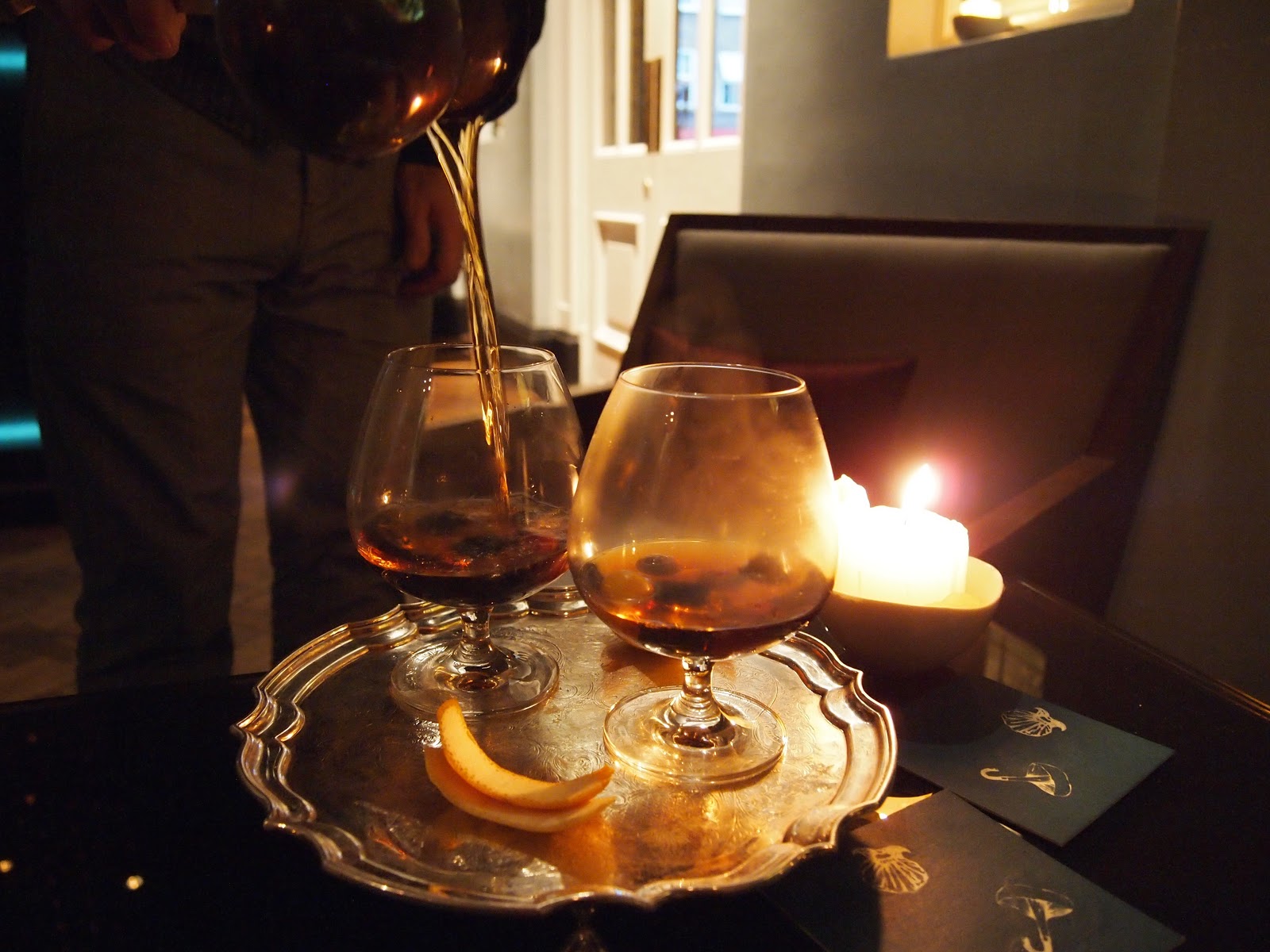 This was a brandy based cocktail, with fresh berries and orange peel. Before serving, the alcohol was "flambéed", there was a wonderful fruity vapour coming from the glass. This would make a perfect Christmas drink!