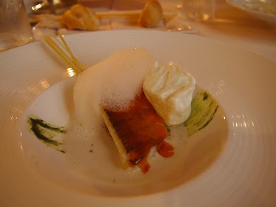 Mille-feuille of goose foie gras, smoked and grilled with basil, pear and "Corallo" coffee sprinkling (2006) - One of my favourites of the night. The combination of pear and coffee syrup worked really well together.