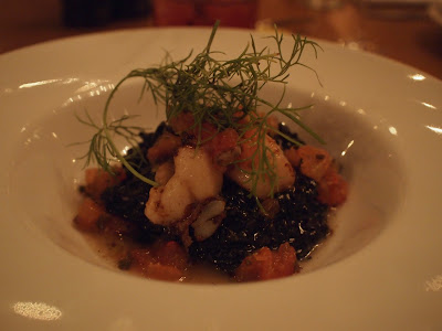 Squid ink risotto, sauteed scallop, salsa rossa. The combination sounded lovely on the menu, however it was let down by the execution. The scallops were cooked but not caramelised on the outside, they had gone a bit mushy, a sign that they may have been cooked in a under-heated pan, and started to boil in their own juice. The risotto was overcooked, with no bite to the rice at all. Saying that, there was a big group starting their meals at a similar time to us, I could imagine how stressful the kitchen was.