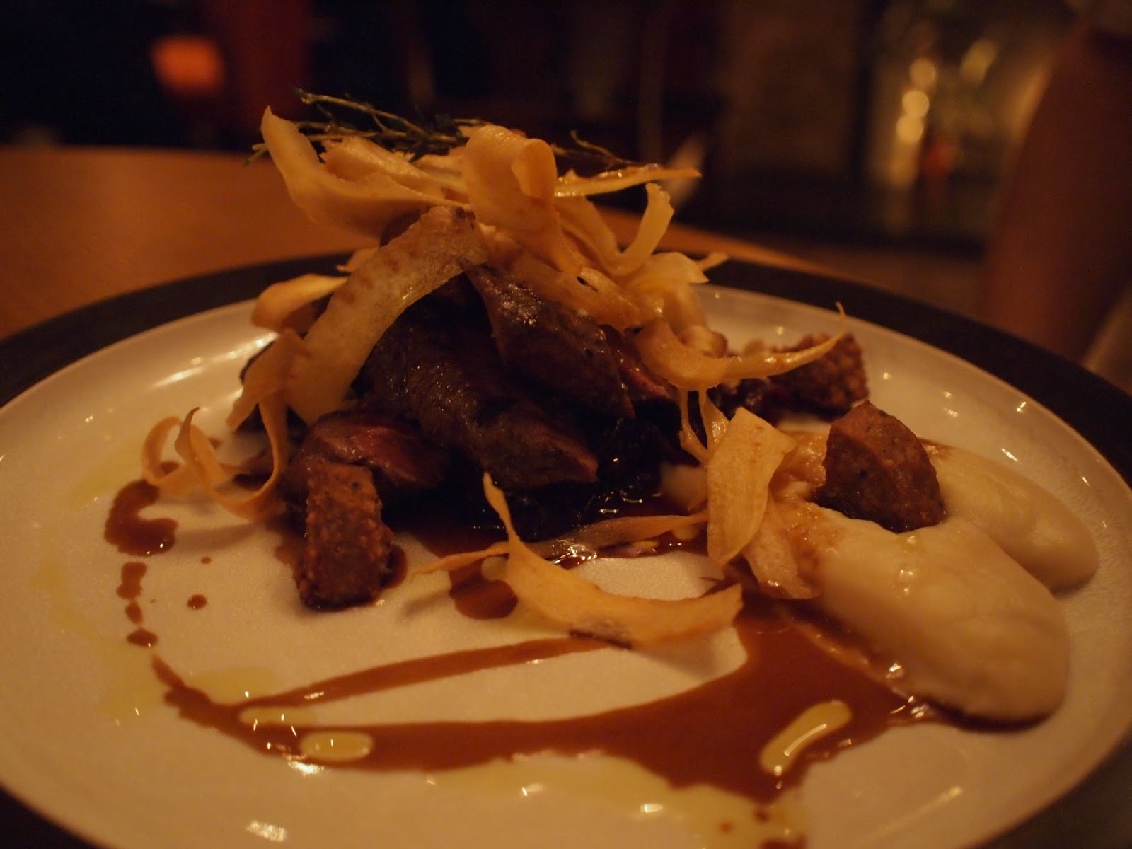 Roast venison, braised red cabbage, celeriac puree. The venison was very tender, cooked to a beautiful pink in the middle. Celeriac puree was silky smooth, it made me remember why classic combinations like this never go out of date.