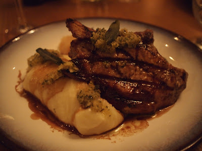 Pork cutlet, olive oil mash, apple puree, gremolata and scratchings. It was definitely one of the most popular dishes that night, as I kept seeing them flying out of the kitchen. It was a generous piece of charred pork cutlet, I could see the slightly pink meat on the bone, it was delicious.