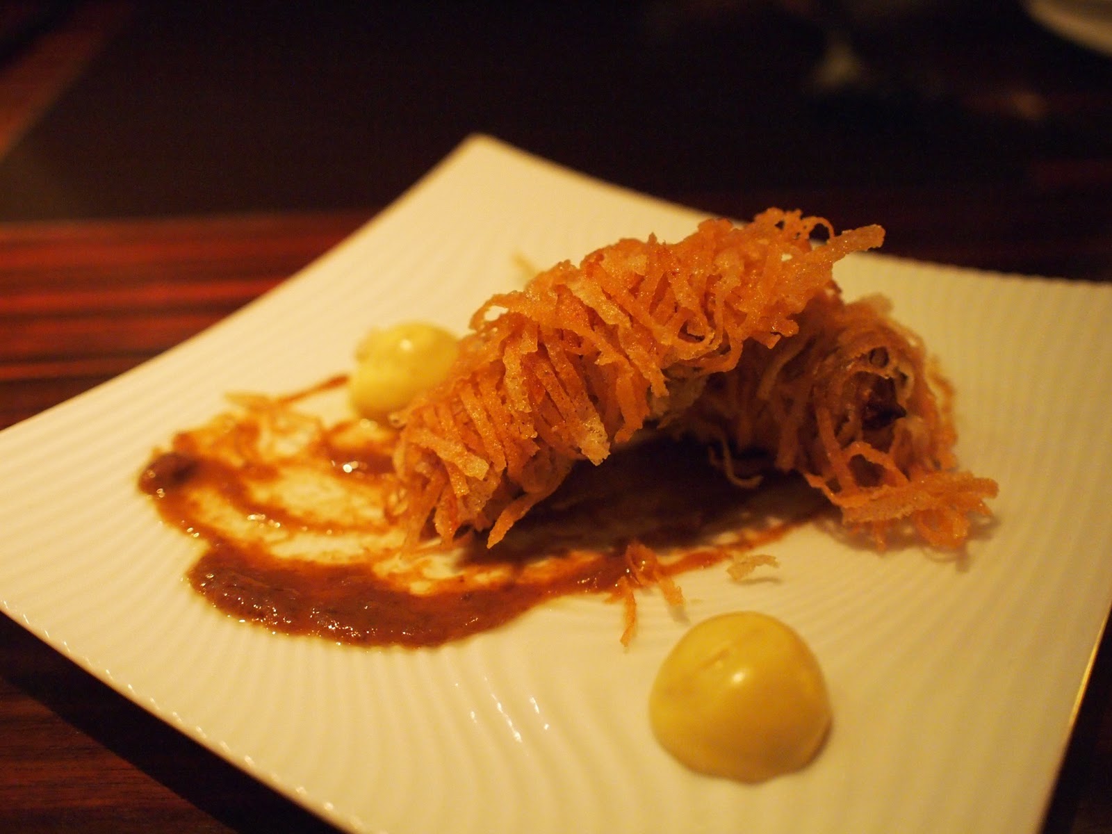 I could not be more disappointed by the fish course. On the menu, the ginger, garlic and red pepper combination sounded like a twist on Chinese flavours, which should have been colourful and fragrant, but it lacked seasoning. It actually brought back memories of monotonous university lectures... yes, it was that bad. The fowl was slightly better, at least it was seasoned. The salsify puree did not work for me, it was already congealed on the plate when it arrived, an indication that the dish had been sitting around for a while.