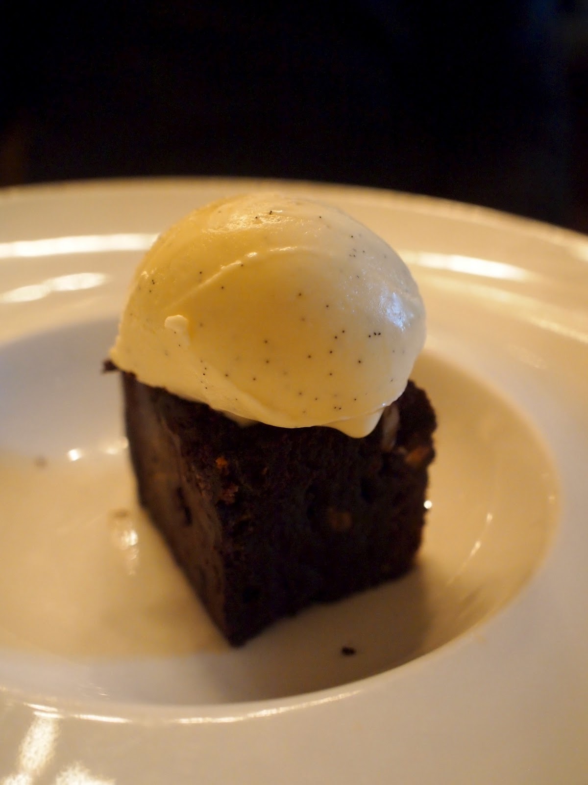 Chocolate brownie and vanilla ice cream - There was nothing wrong with this dessert, it was just not very exciting. I would have preferred a warm chocolate brownie on a cold and rainy day...