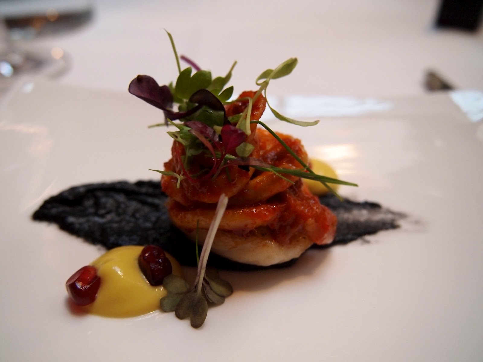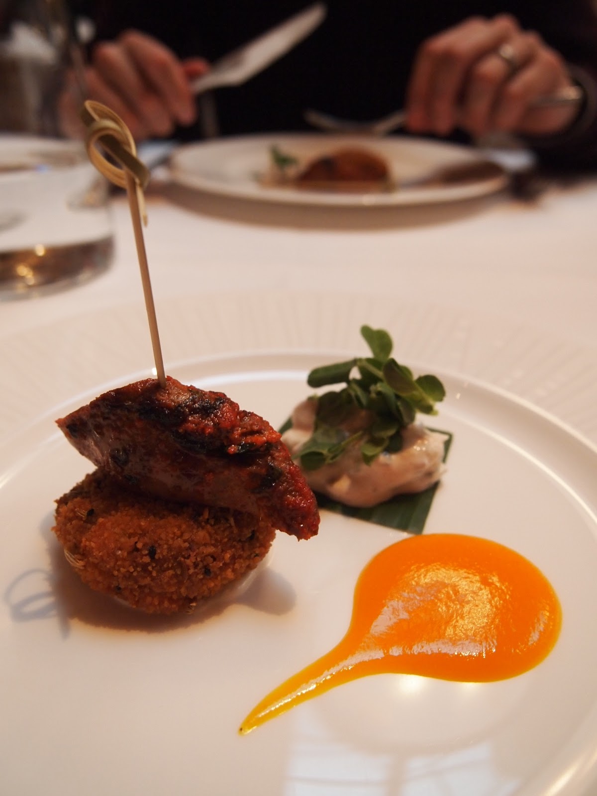 Calamari with chickpeas and ink. A very colourful dish - lightly cooked squid with rocket, tomato, chickpeas and squid ink. It was a mild, comforting dish in contrast with some of the the other heavier dishes we had.