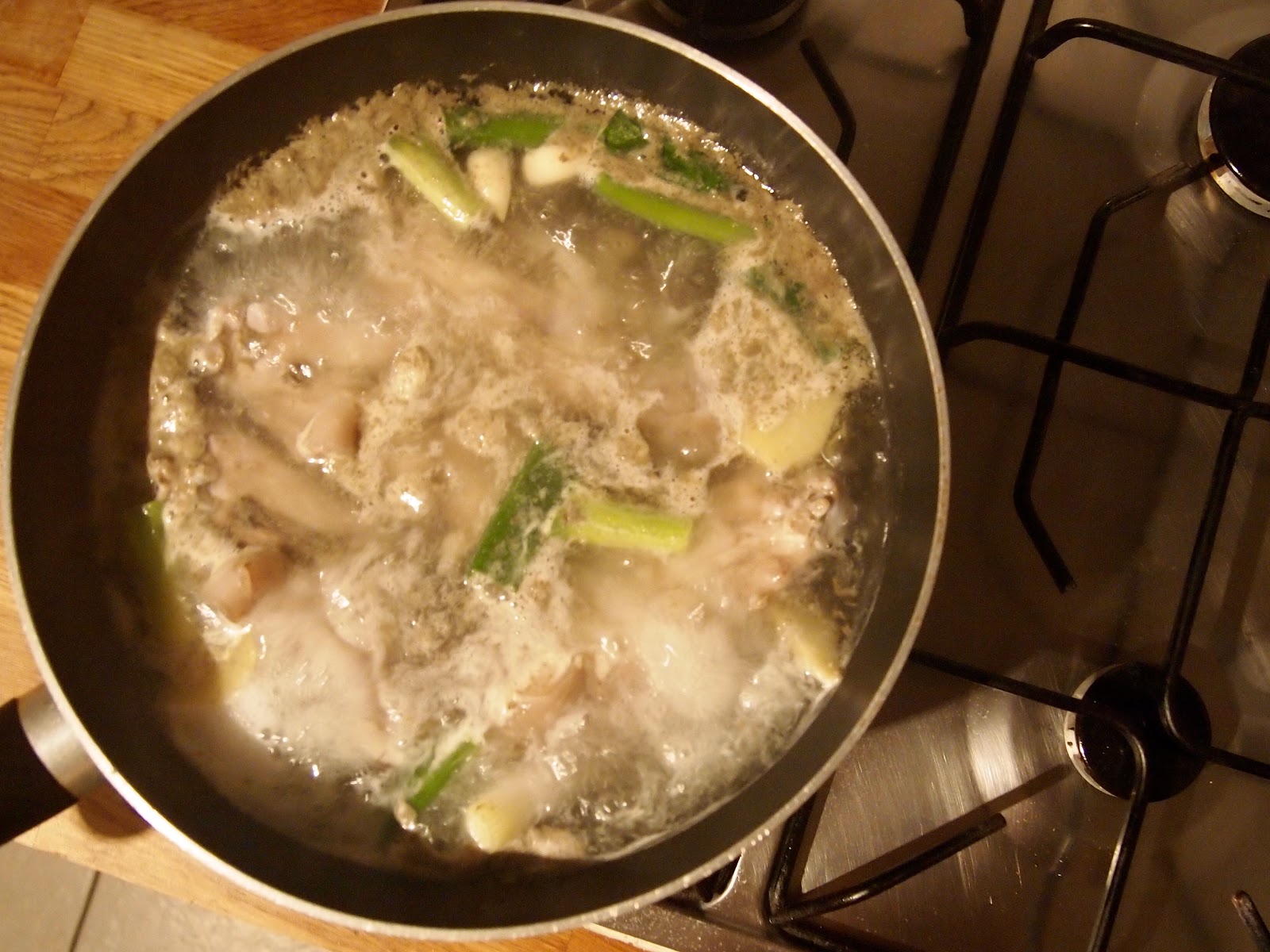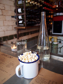 Since the restaurant does not take reservations, our plan was to arrive early to beat the crowd. We arrived at around half past six, and there were four empty seats at the bar (from what I could see, all the seats are at the bar, except for a small table at the back), so we got to sit down straight away. We were given a mug of popcorn, and some tap water while we read the menu. I have to mention that the popcorn was delicious - I think it was salt and butter.