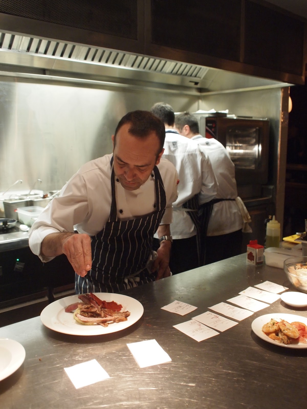 If you feel uncomfortable about enjoying your meal while standing up, don’t worry, Mr Pizarro has it covered. A few doors down the road is the newly opened sit-down restaurant Pizarro. We went there to take advantage of the soft opening (last December), where everything on the menu was half price. Behind the wooden door is a L-shape dining area, decorated with dark wood furniture and red brick walls. There was a long table along one side of the room, and a few tables and bar seats on the other side facing the open plan kitchen.