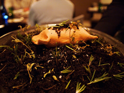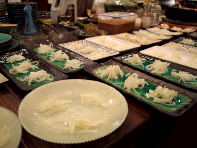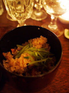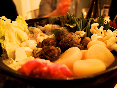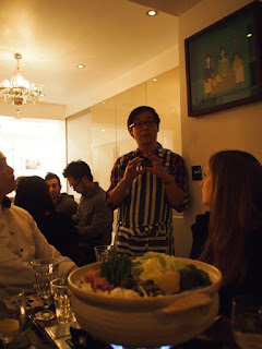After the drinks, we were led to the dining room where several nabe were setup on the tables. The ingredients - clams, pork belly, daikon, prawns and vegetables - were perfectly arranged in the pot. Luiz chose nabe to kick start the meal, because it is a dish for sharing so would help to break the ice. What a thoughtful idea.