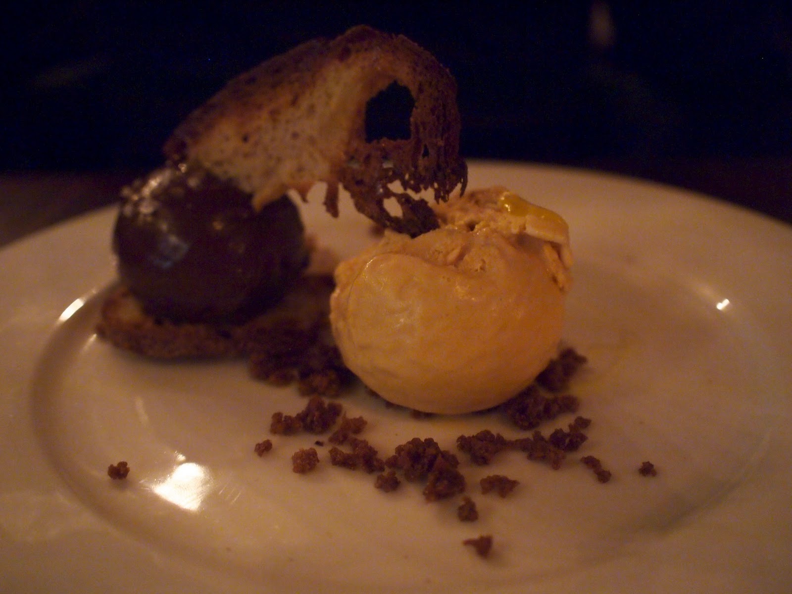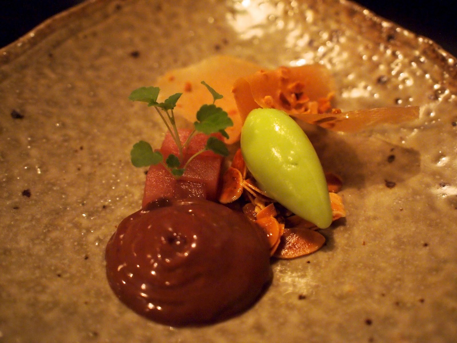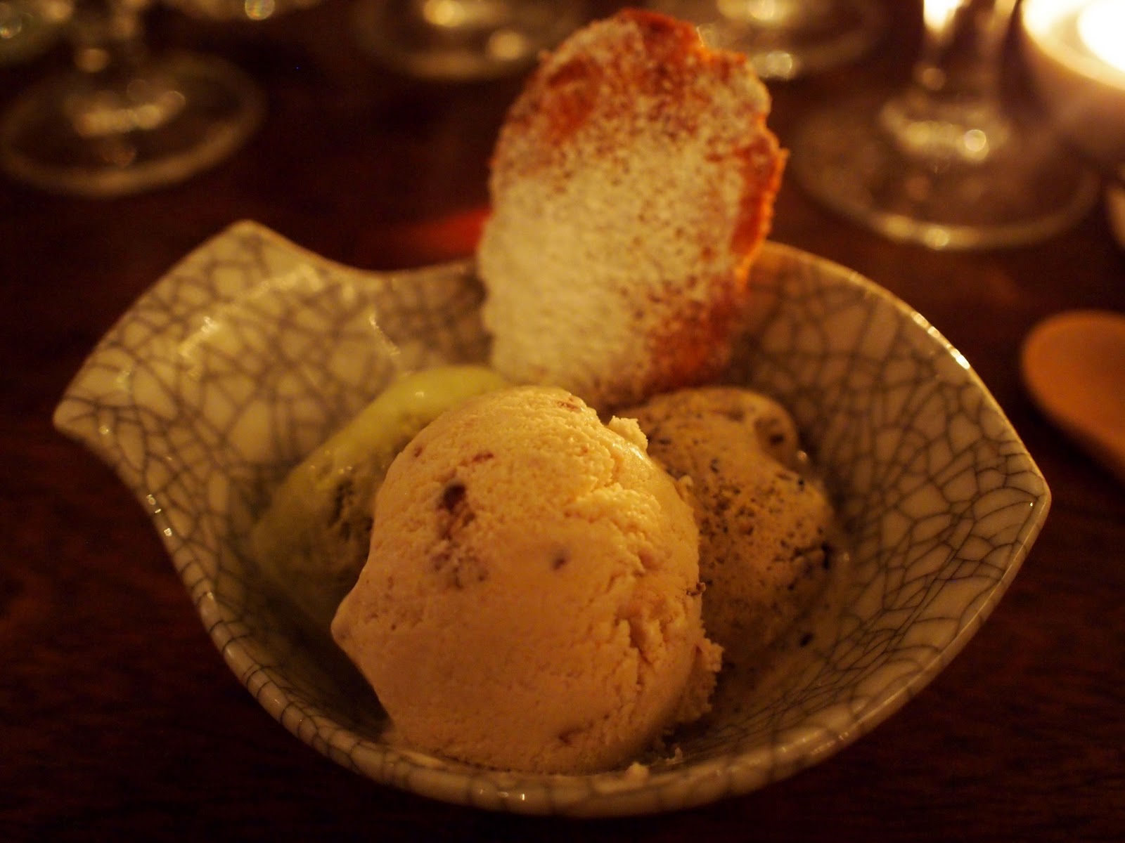 The dessert was a madeleine with a trio of homemade ice creams - green tea, black sesame and red bean.