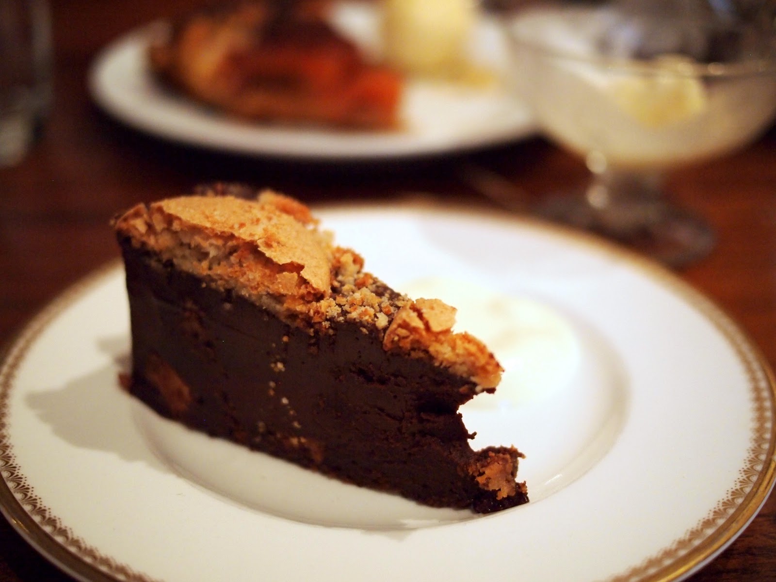 We were all full up by the time we finished the mains, but it would be foolish to miss Hannah’s desserts. So we ordered the two most tempting desserts to share between six of us – an apple tarte tatin with cinnamon ice cream and a St. Emilion au chocolat. And yes we chose well. SO WELL. The pastry of the tatin was beautifully brown and crispy. It was a hearty portion but soon demolished out of greed. The St. Emilion au chocolat is a no-bake chocolate cake, think heavenly rich dark chocolate mixed with crunchy marcaroon.